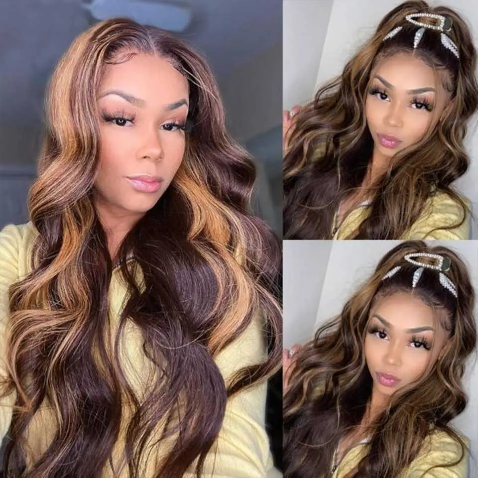 ColorNature Color, Ombre Highlight Body Wave Lace Front Wig