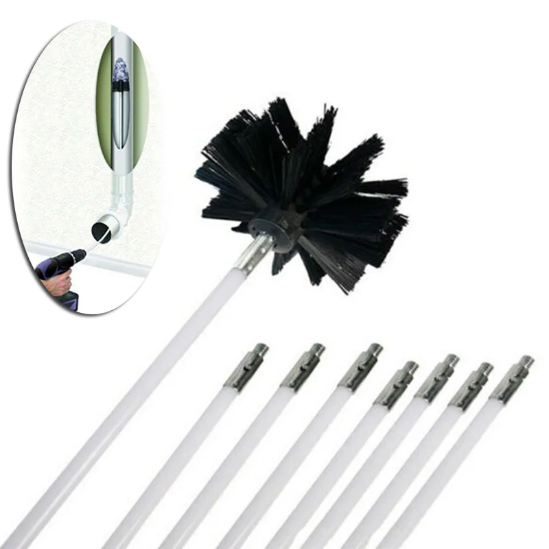 Набор для очистки дымохода, 8 полюсов + головка щетки, можно согнуть, чтобы удлинить очиститель дымохода, внутренняя очистка щетка для очистки стен