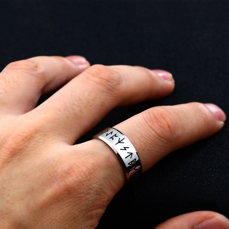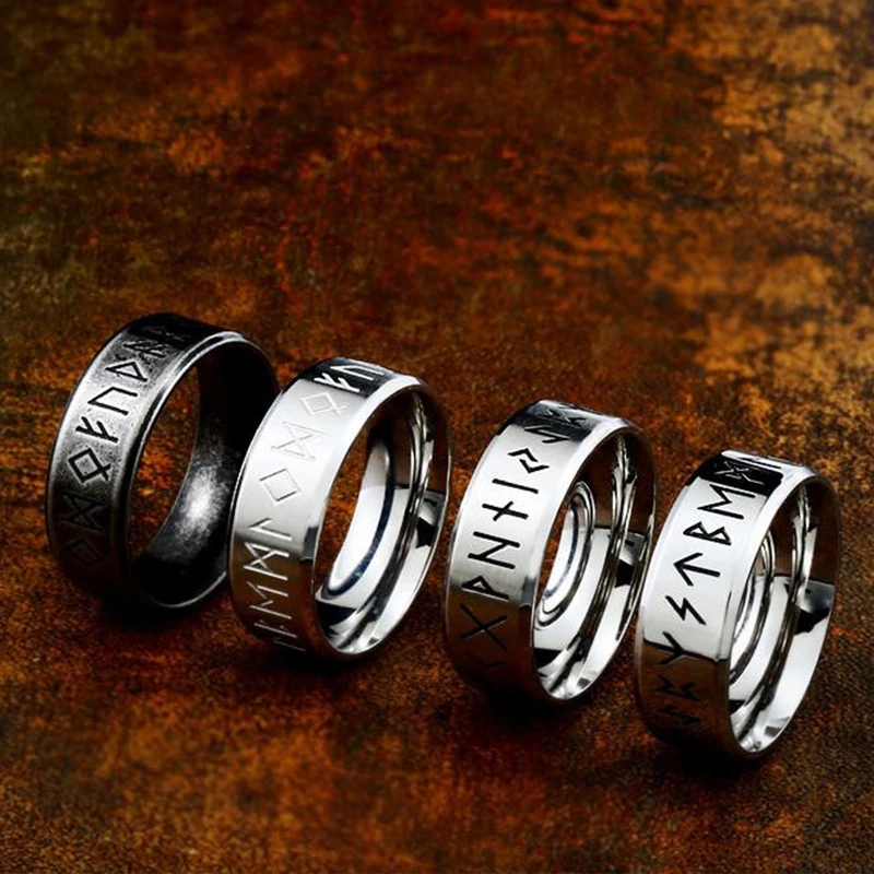Кольцо мужское из нержавеющей стали с надписью викингов