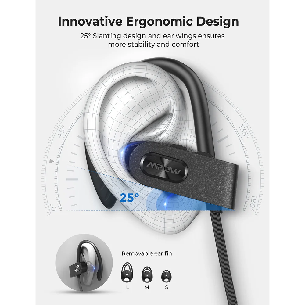 1. Усовершенствованный BLUETOOTH 5,0Mpow Flame использует новейшую технологию Bluetooth 5,0 для более стабильного соединения и более сильной передачи сигнала. Он поддерживает различные устройства с поддержкой Bluetooth, и вы можете оставаться на связи с 2 bluetooth-устройствами одновременно2. Захватывающий звук с мощными басамиС 11 мм динамическими драйверами, встроенными микрофонами с шумоподавлением cVc6.0 и чипом аудио SBC и AAC, mpow Flame обеспечивает фантастическое качество звука с мощным звучанием басов и кристально чистым голосовым вызовом на любой громкости. Вокал не будет смешиваться с инструментами. Выберите подходящие насадки для ушей (XS/S/M/L), чтобы получить лучший опыт запечатывания и прослушивания для интенсивных тренировок3. IPX7 водонепроницаемый для тренировкиВодонепроницаемый корпус IPX7 и внутренняя технология нано-покрытия эффективно защищают пламя Mpow от сильного дождя или пота во время интенсивных тренировок и всепогодных условий. Идеально подходит для бега, бега трусцой, пеших прогулок, йоги, упражнений, тренажерного зала, фитнеса, путешествий и т. д.4. Воспроизведение 7-9 часовВстроенный Улучшенный полимерный литиевый аккумулятор, Mpow Flame предлагает 7-9 часов превосходной звуковой производительности/Время разговора всего через 2 часа зарядки. И это покажет оставшуюся батарею наушников на экране вашего телефона. (Примечание: Пожалуйста, используйте зарядный кабель, указанный в упаковке)5. Комфорт и надежная посадкаБлагодаря легкому и эргономичному дизайну, Mpow Flame-это отличное сочетание комфорта и стабильности с ушным крюком и креплением в ухо, предназначенным для напряженных тренировок
