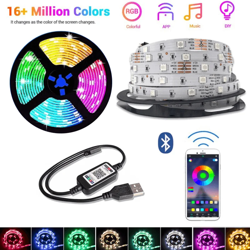 Светодиодные ленты, совместимые с Bluetooth, 1 м, 2 м, 5050 RGB, гибкая лента, Светодиодная лента 5 м с управлением через приложение для телефона, украшение для рабочего стола ТВ