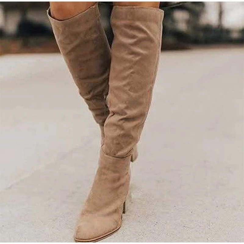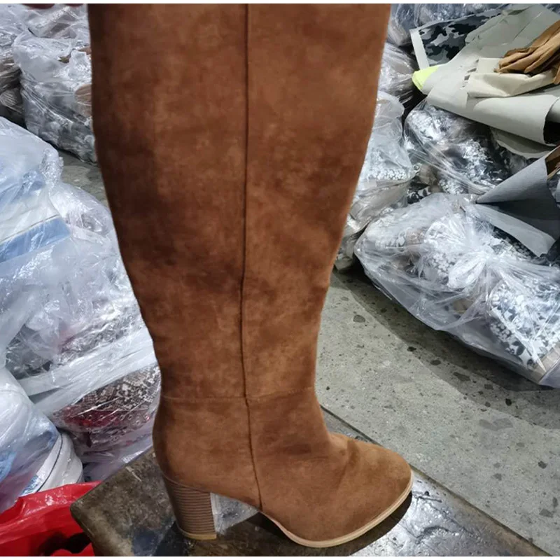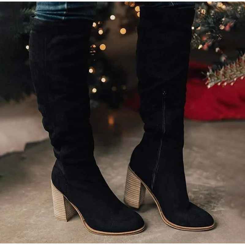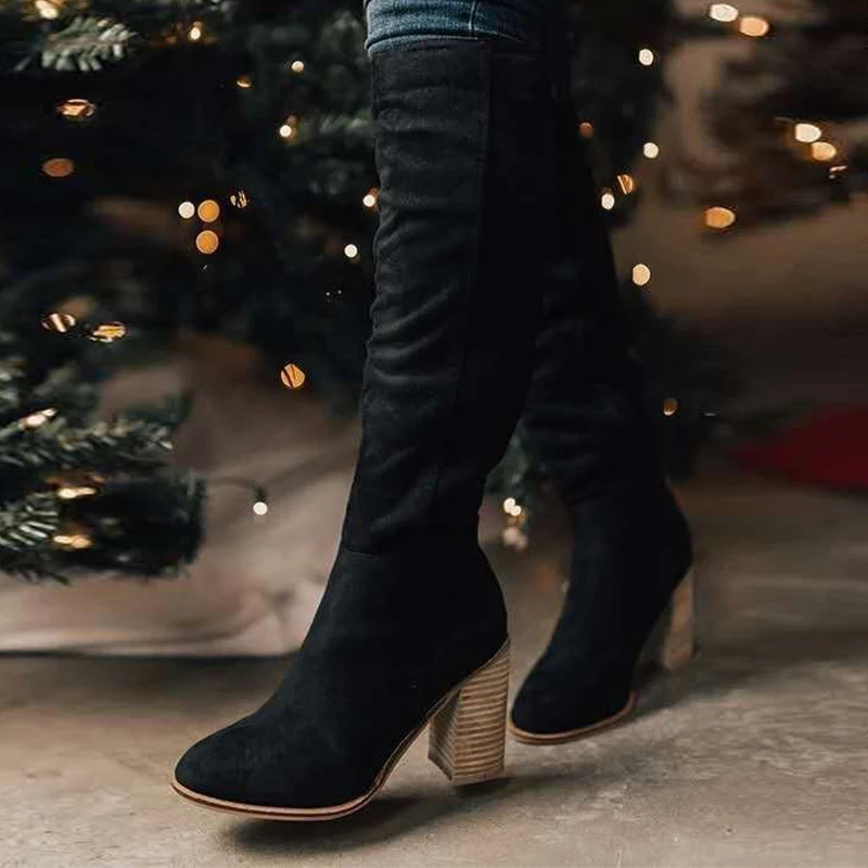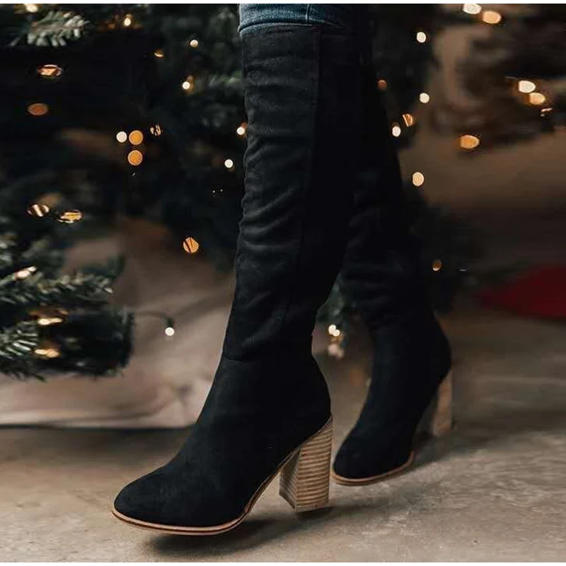 Женские флоковые сапоги на квадратном каблуке, на молнии