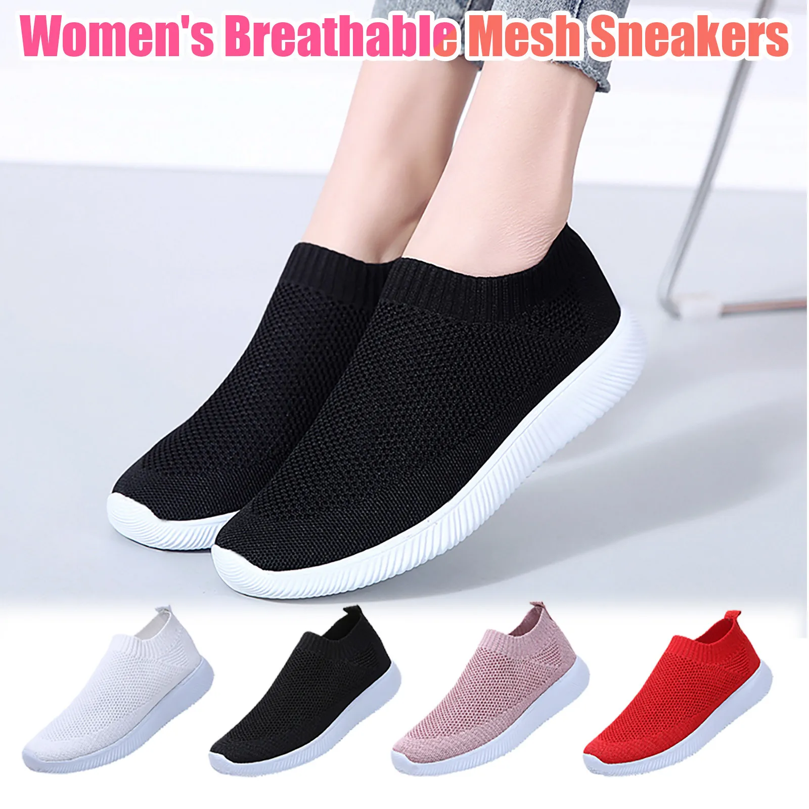 Женские кроссовки из дышащей сетки размера плюс, мягкие повседневные кроссовки без шнуровки