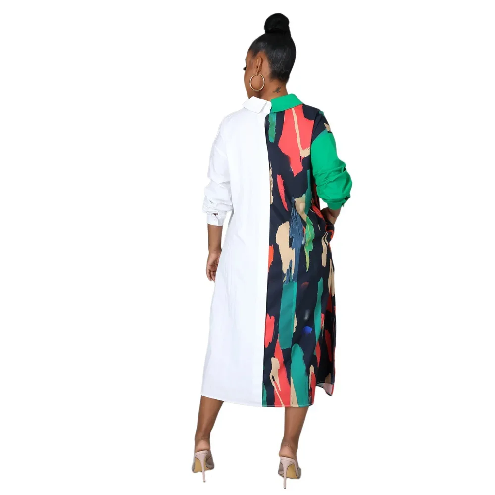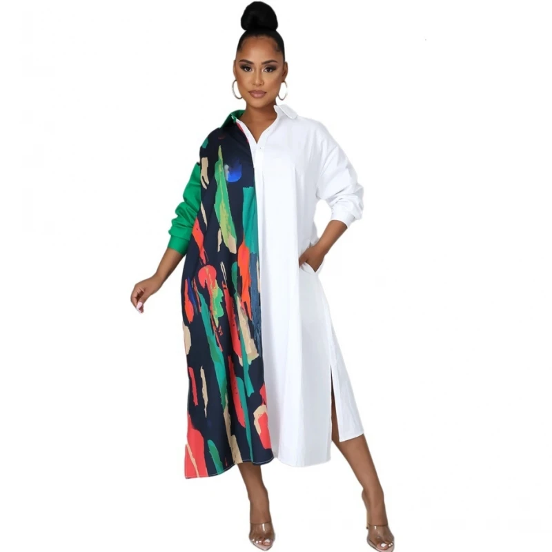 Уличное длинное платье-рубашка, женское белое платье-рубашка на пуг...