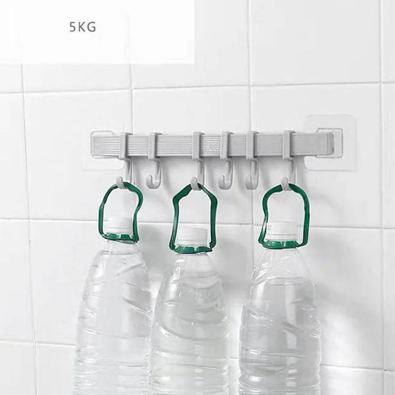 Новый многофункциональный крюк для хранения, держатель, 6 крючков, настенный дверной держатель, вешалка для ложки, совок, аксессуары для ванной комнаты, кухонные принадлежности
