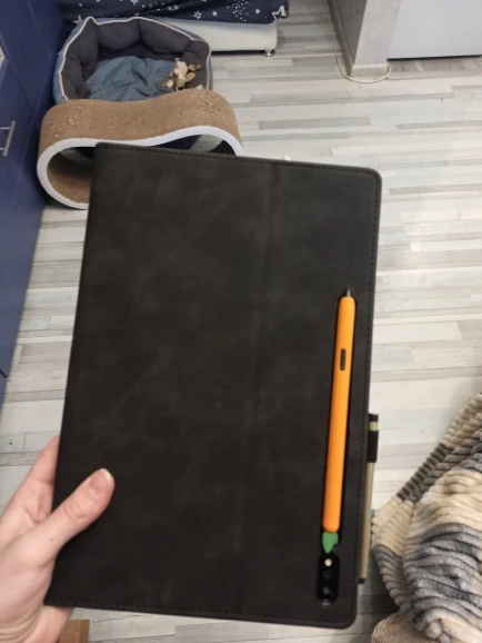 Дошло быстро. Хорошо упаковано в пупырку, ничего не помялось. Чехол как на картинке. Еле впихнула туда s7 fe. Туго, но впихнула, так что всё ок. Ф-ия автоматического вкл-выкл при открытии чехла работает. На ощупь как искусственный нубук.