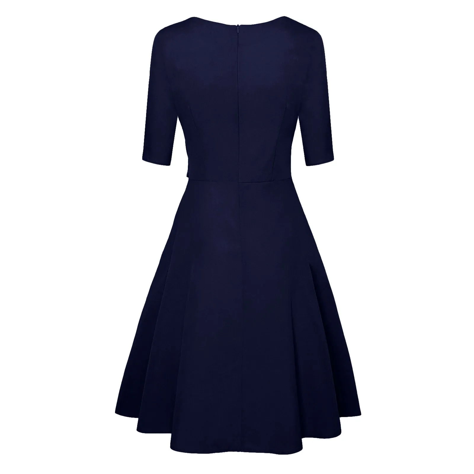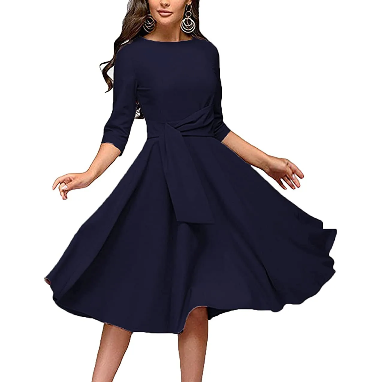Платье женское ТРАПЕЦИЕВИДНОЕ, с круглым вырезом, рукавом 34