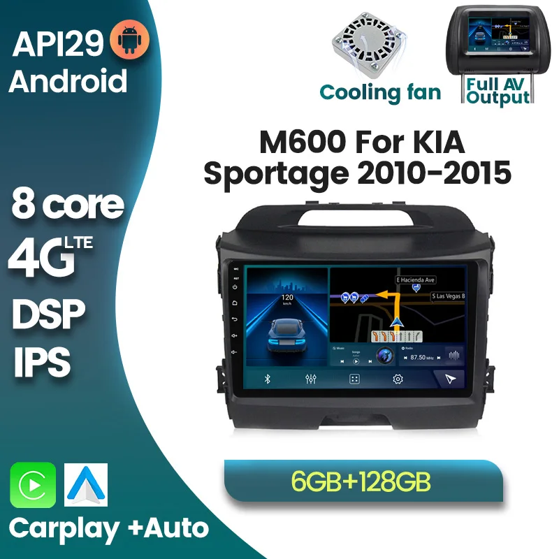 Автомобильный радиоприемник M600 6G + 128G Android 10,0 4glte, мультимедийный видеоплеер для KIA Sportage R 2011 2008-2017 5 ГГц WiFi BT Carplay Auto