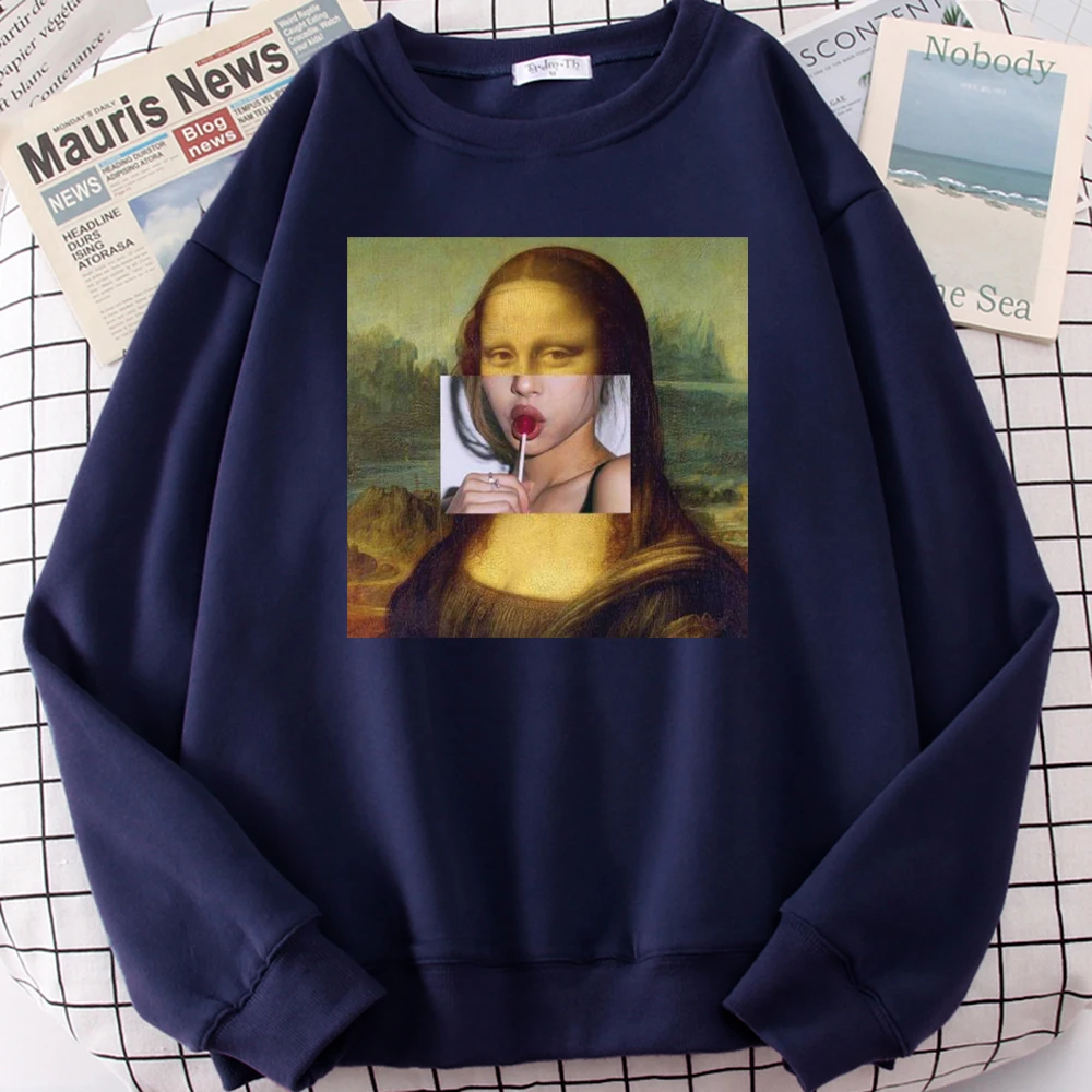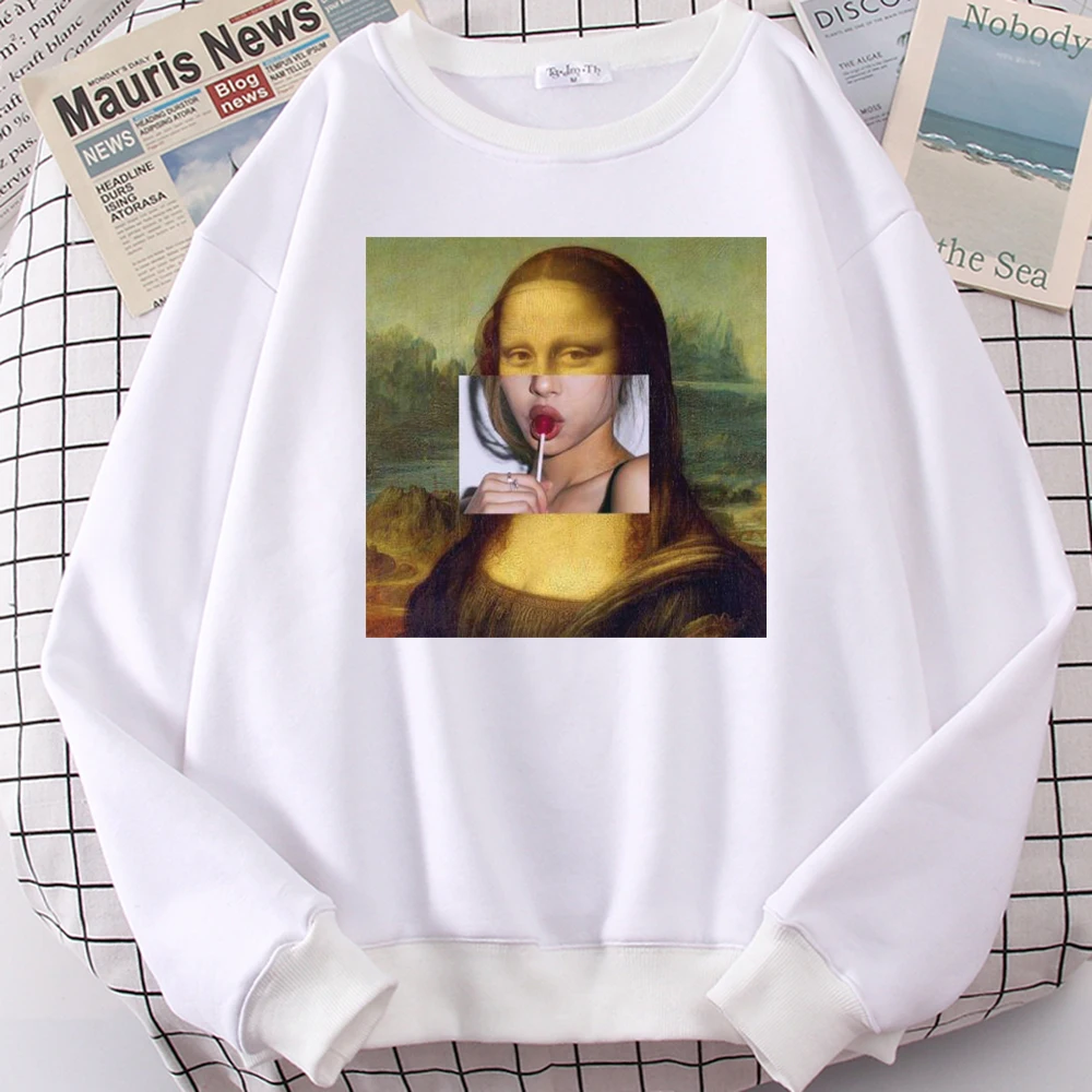Художественные художественные толстовки с принтом Моны Лизы, повседневные свободные спортивные костюмы, винтажная забавная толстовка, Мужская Удобная одежда оверсайз для мужчин