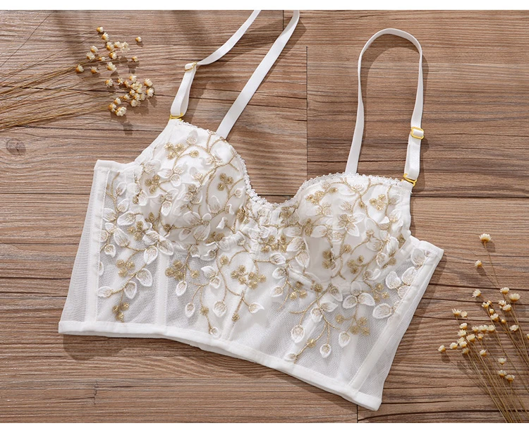 Комплект женского нижнего белья с вышивкой, Привлекательный бюстгал...