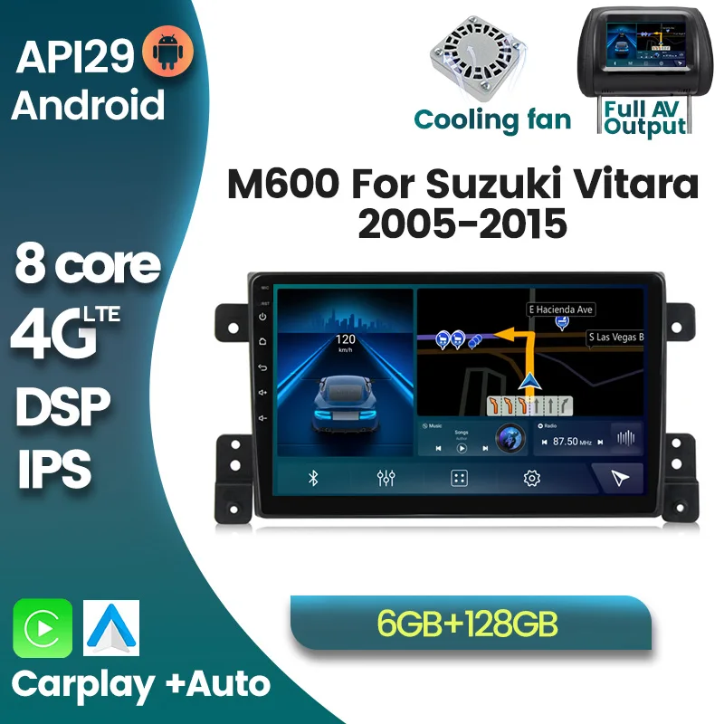 Автомагнитола 2 Din на Android 10,0, мультимедийный видеоплеер с GPS-навигацией, 6 + 128G DSP стерео для SUZUKI GRAND VITARA 2007-2013