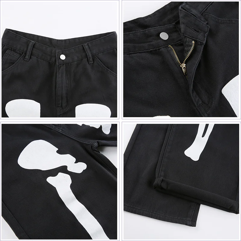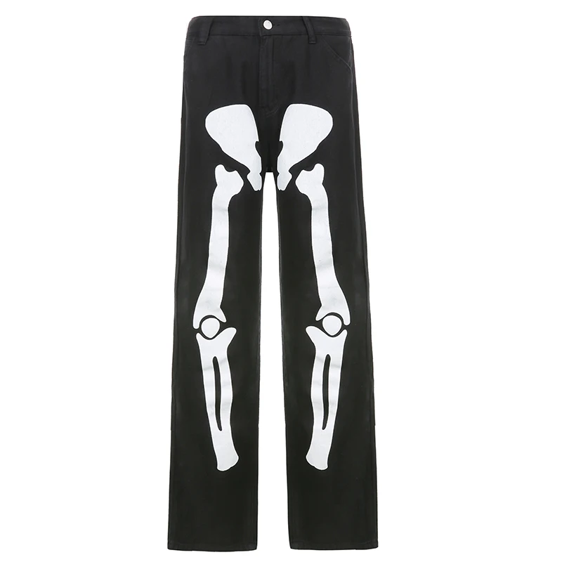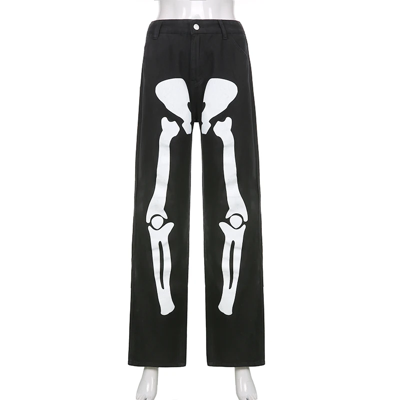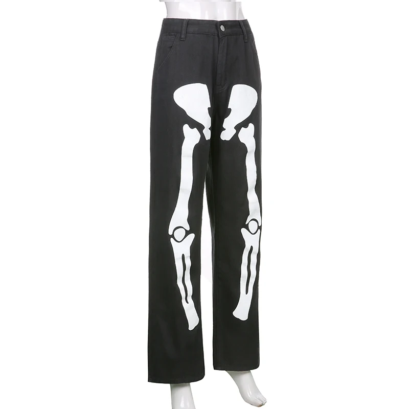 Джинсы HOUZHOU женские с принтом скелета, штаны из денима в стиле о...