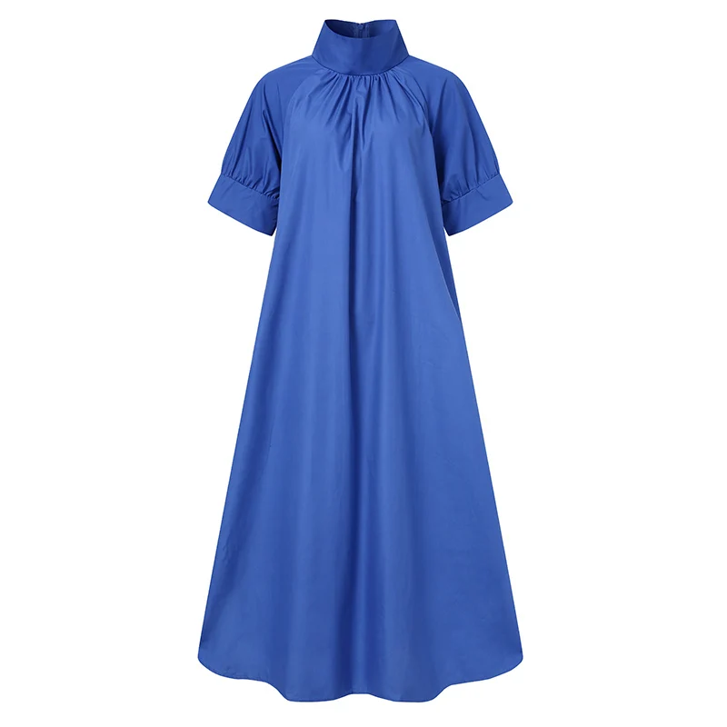 Женское платье-трапеция, с отложным воротником и рукавами-фонарикам...
