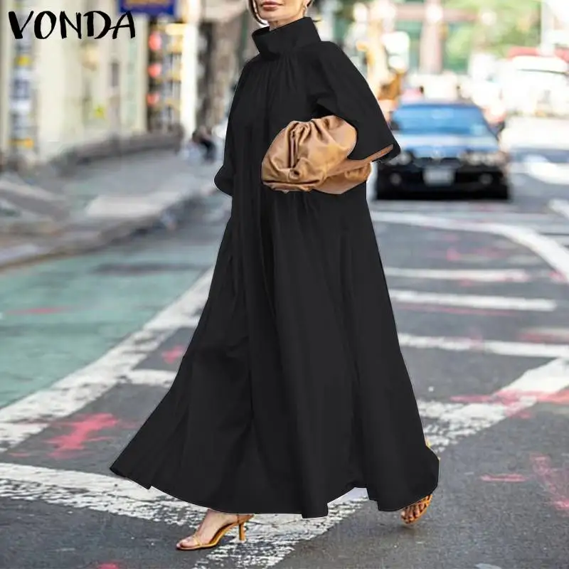 2021 VONDA женское летнее платье с воротником-хомутом, винтажные вечерние платья с коротким рукавом, элегантное платье, богемвечерние вечернее длинное платье для женщин