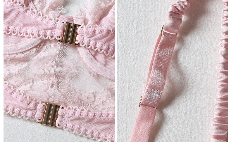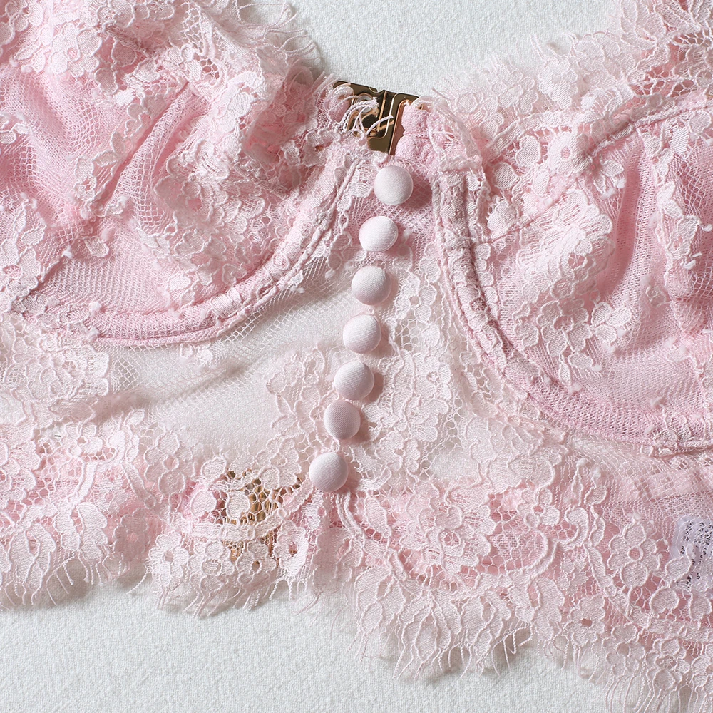 Комплект женского кружевного нижнего белья, бюстгальтер с ресничками и розовые трусики, женское белье большого размера