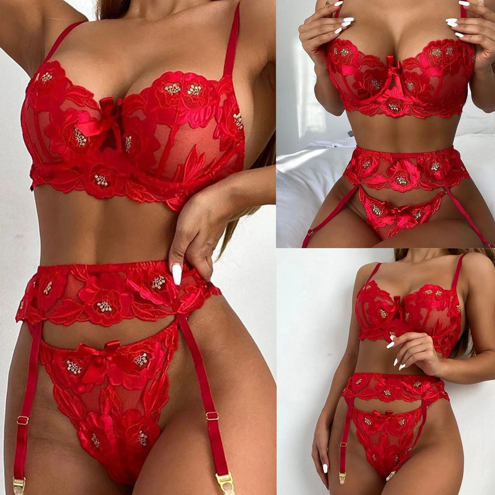Сексуальное чувственное женское нижнее белье из 3 предметов, Женски...