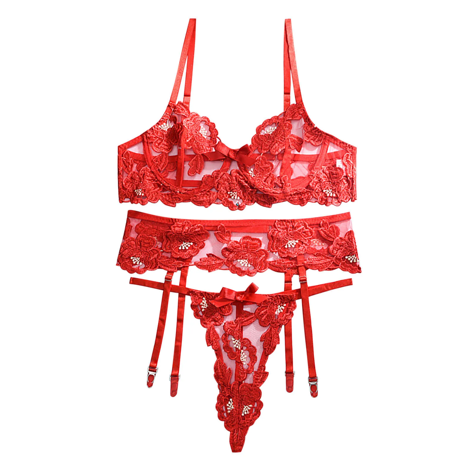 Комплект кружевного нижнего белья Yimunancy из 3 предметов с цветоч...
