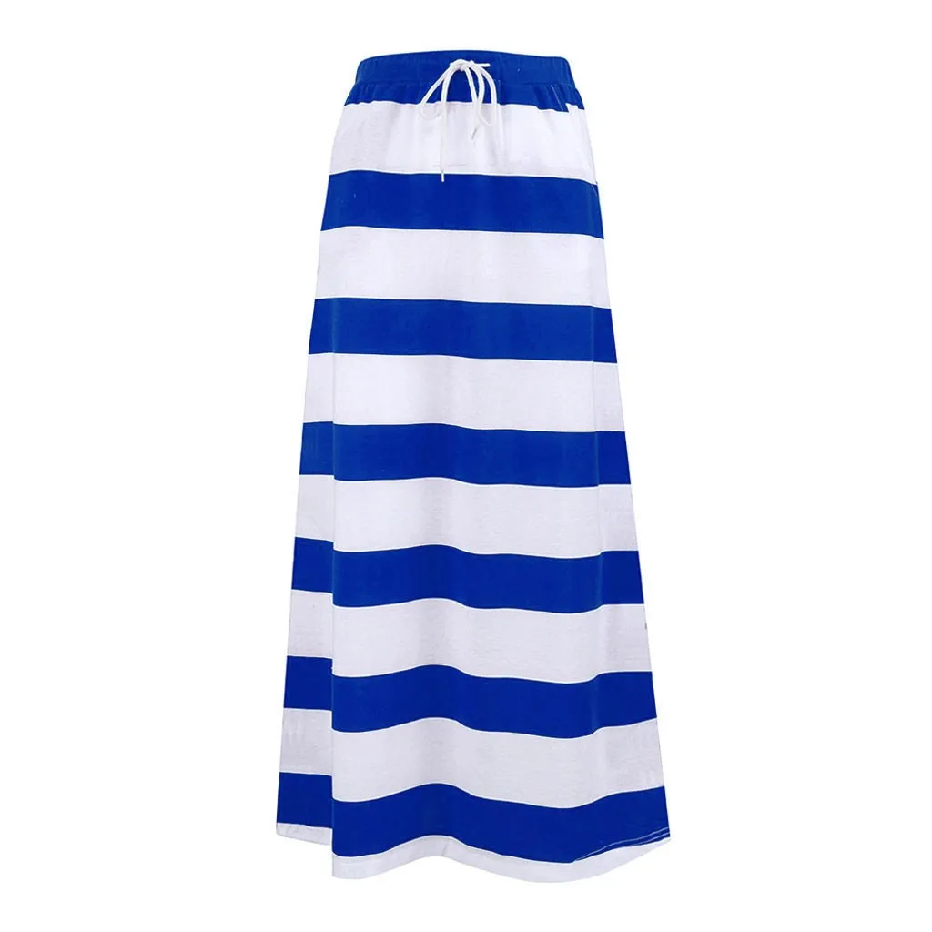 Женская длинная юбка макси в полоску, повседневная Лаконичная юбка с высокой талией, праздничная юбка в стиле Харадзюку, 2021