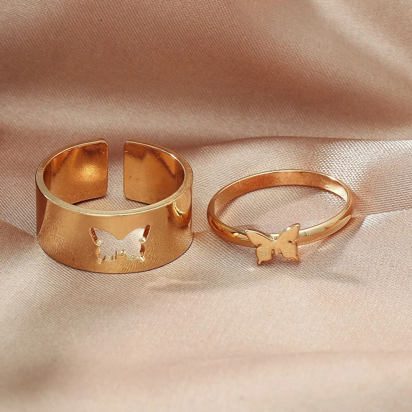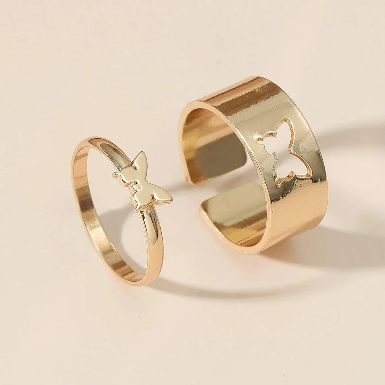 EN 2 набор парных регулируемых колец с бабочками для женщин и мужчи...