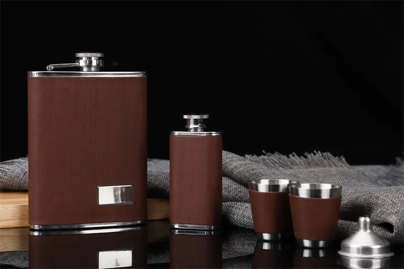 Фляжка для виски, 9 унций, фляга для спирта, водки, из нержавеющей стали 304, под дерево