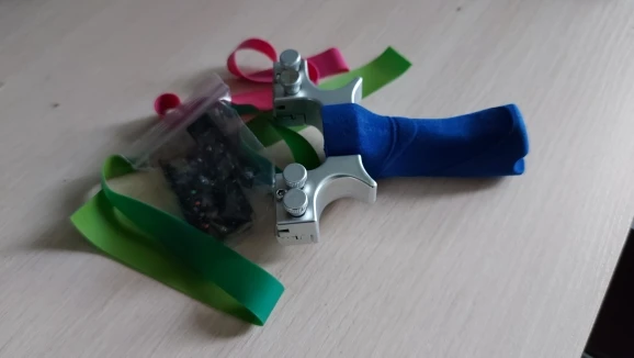 Получил рогатку, соответствует описанию, ещё не проверял. Дополню отзыв позже. Жгуты конечно тонкие, как в детстве рогатки делали, но по виду - качественные. Рукоять под три пальца, мужской руки.