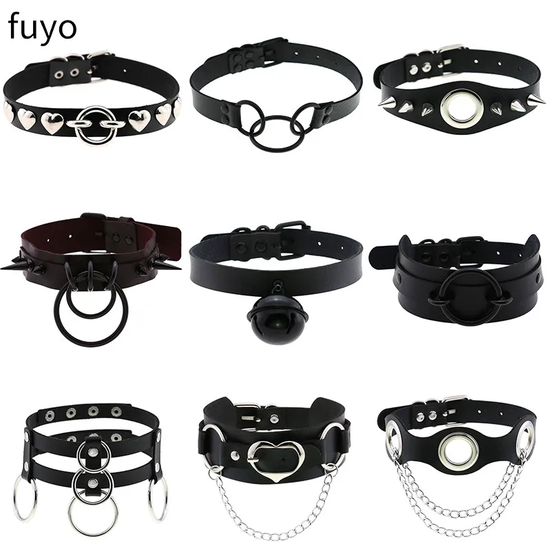 Ожерелье из искусственной кожи для мужчин и женщин, готическое ожер...