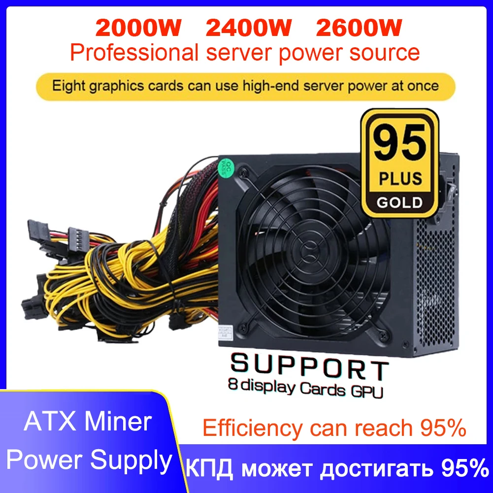 Блок питания для ПК 2000 Вт, 2400 Вт, 2600 Вт, 180-260 В, ATX для майнинга биткоинов 95%, высокая эффективность, поддержка 8 дисплейных карт, GPU для майнинга BTC