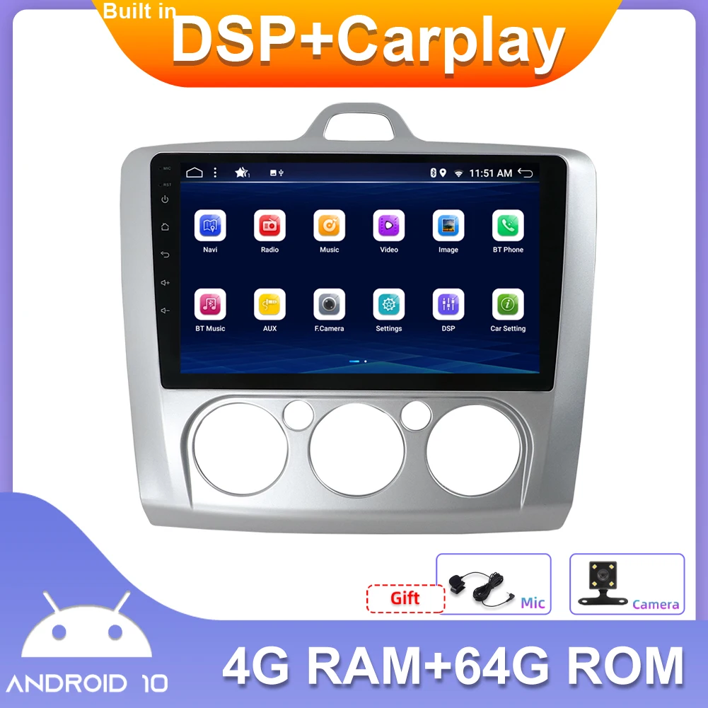 Автомобильный 9-дюймовый DSP автомобильный радиомагнитофон для Ford Focus 2006-2011 Android 10,0 Carplay Mirror Link камера заднего вида 1024*600