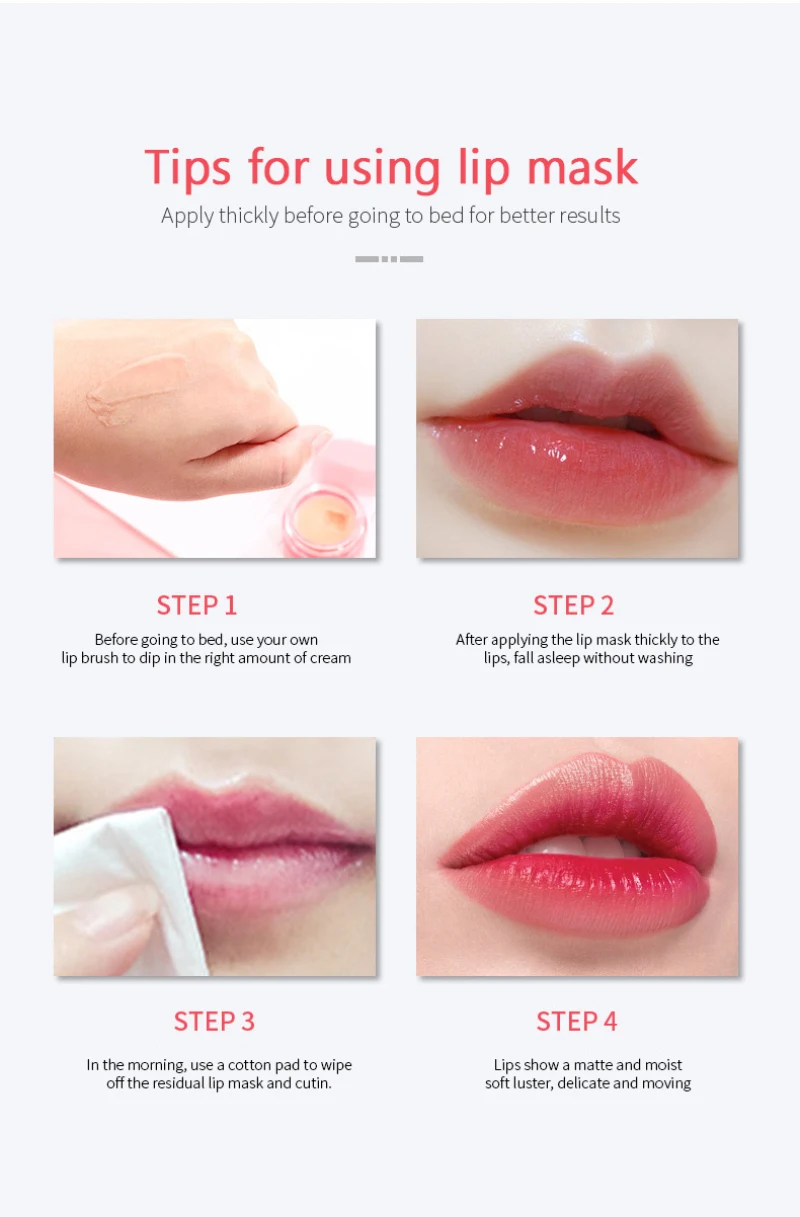 Маска для сна для губ, которая обеспечивает упругость губ, мягко Тая омертвевшую кожу на губах ночью.