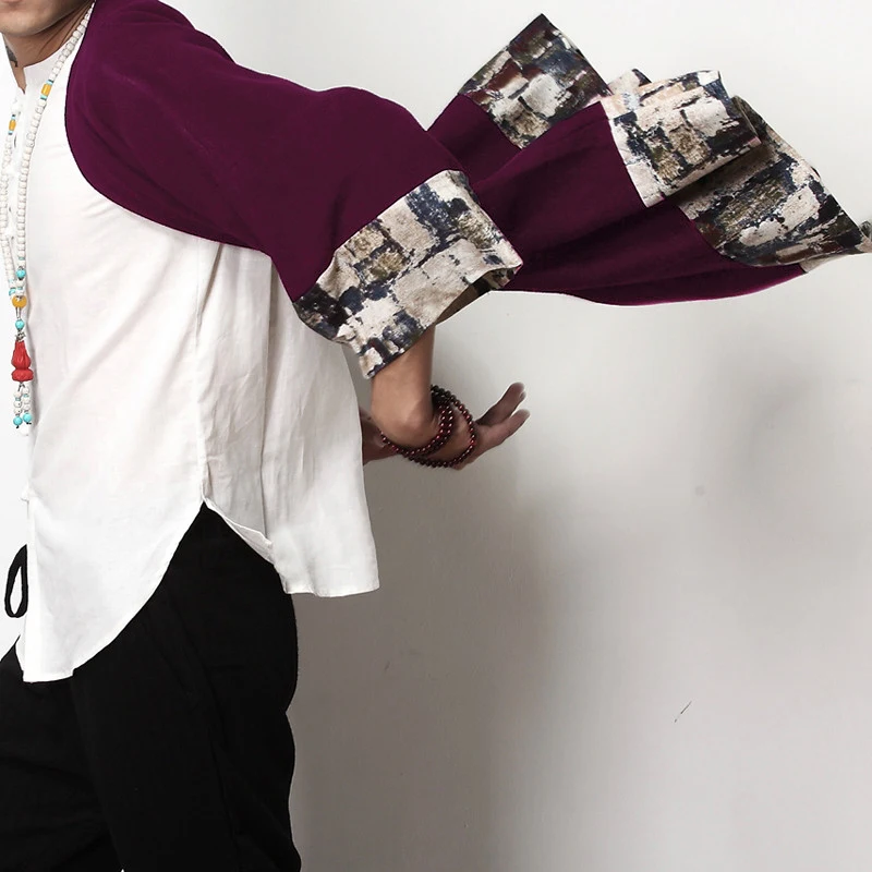 Китайский ретро-тренчкот, мужской кардиган в стиле хип-хоп с широкой талией и цветочным принтом, куртки с рукавом три четверти и открытой строчкой, свободная одежда, большой размер