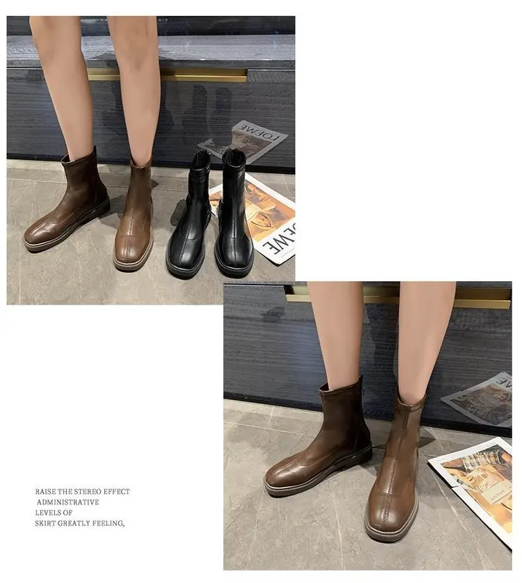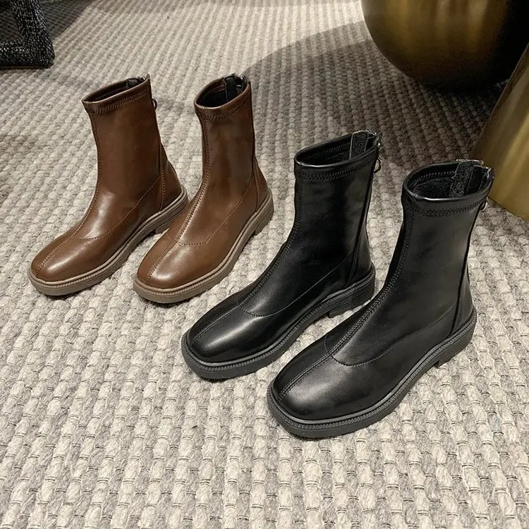 Женские ботильоны из натуральной кожи, черные или коричневые универсальные ботинки на толстой подошве, с круглым носком, на платформе, новинка 2021