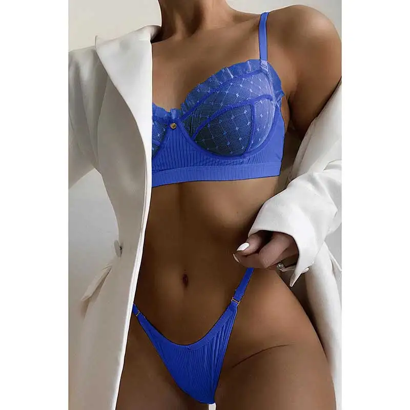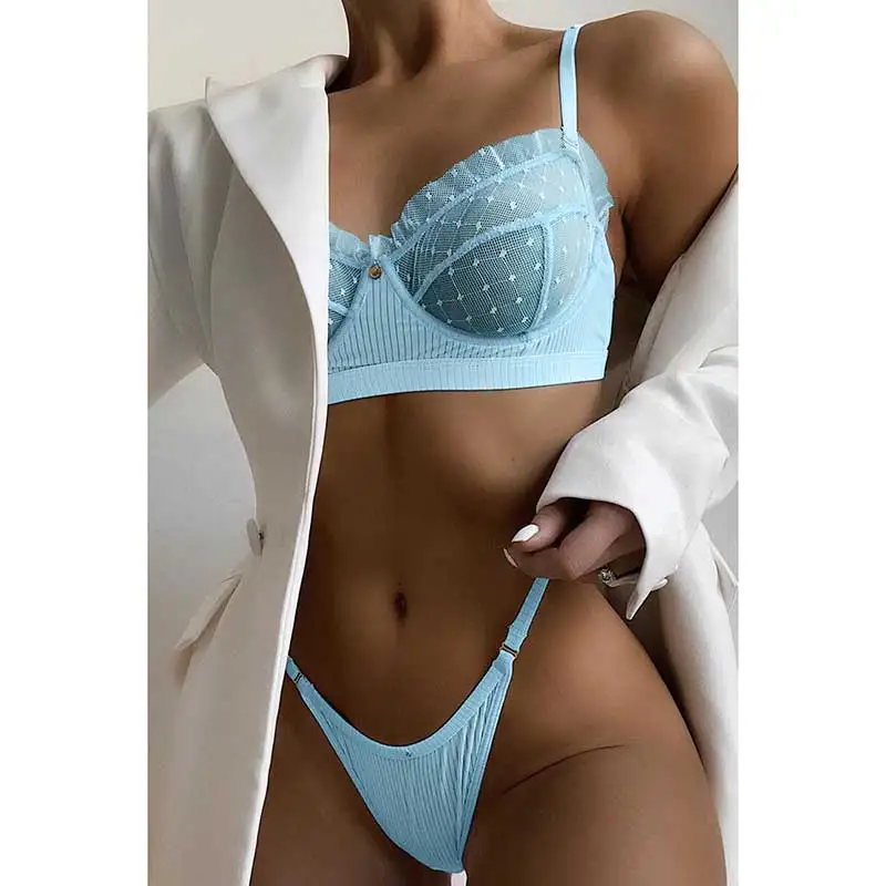 Комплект женского нижнего белья, кружевное, прозрачное, с вышивкой и пуш-ап