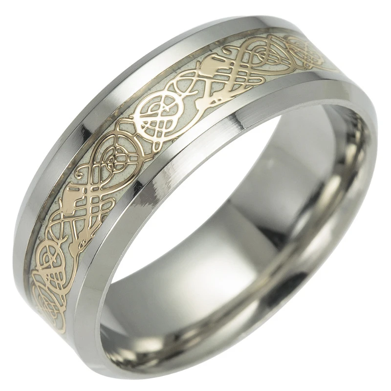 Светящееся кольцо с рисунком дракона, кольцо из титановой стали в к...