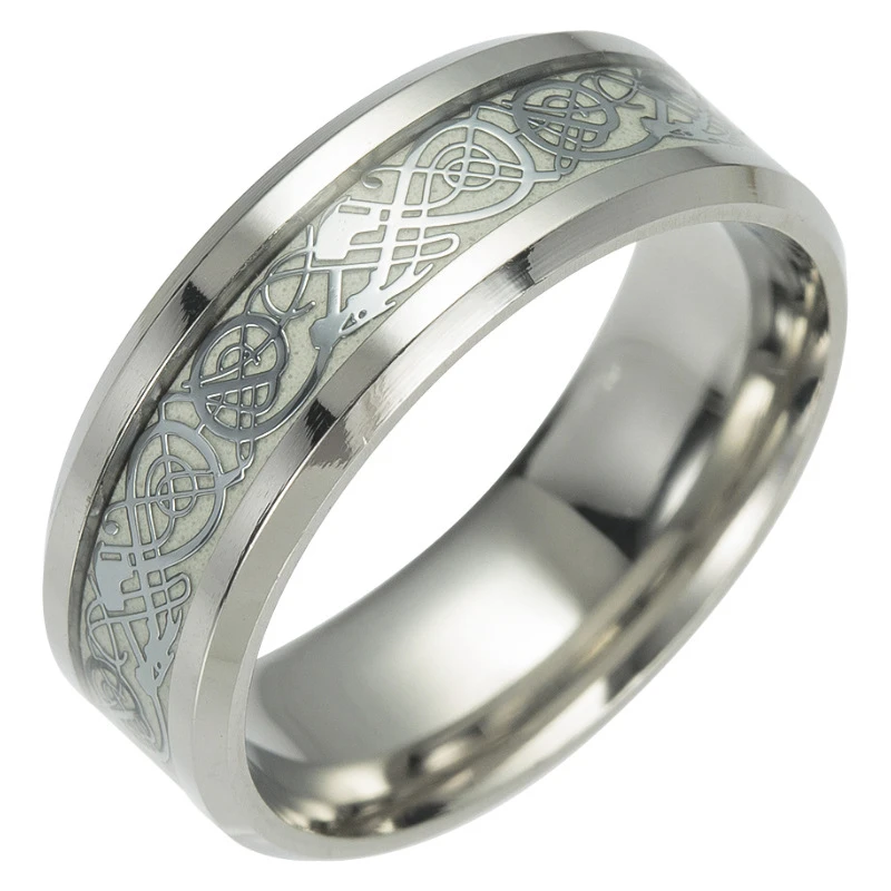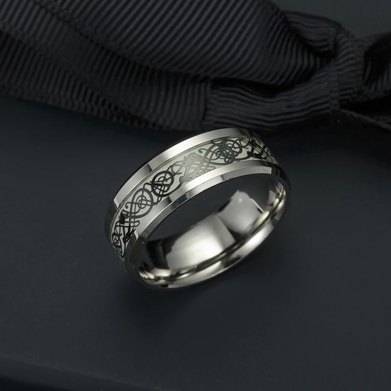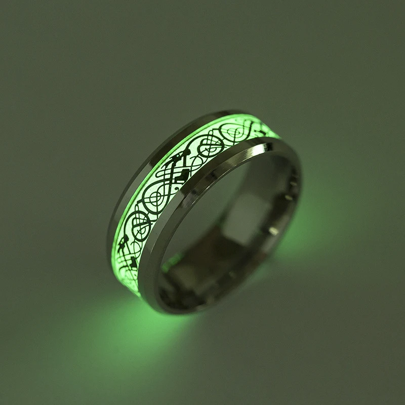 Модное светящееся кольцо дракона ретро из нержавеющей стали флуорес...