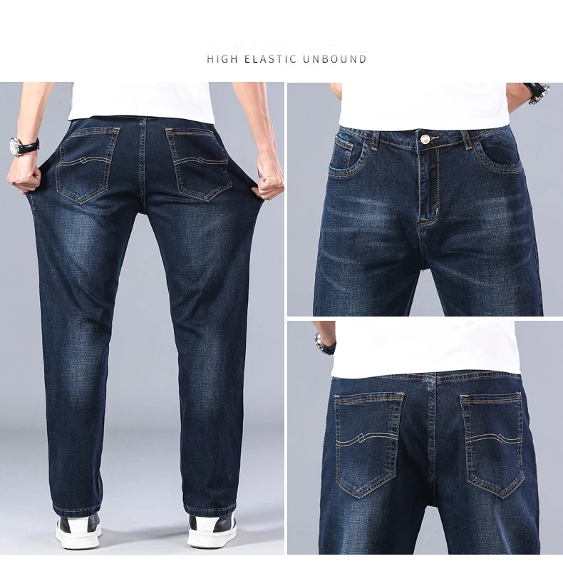 Джинсовые брюки мужские, синие, эластичные, большие размеры 40, 42, 44, 2021