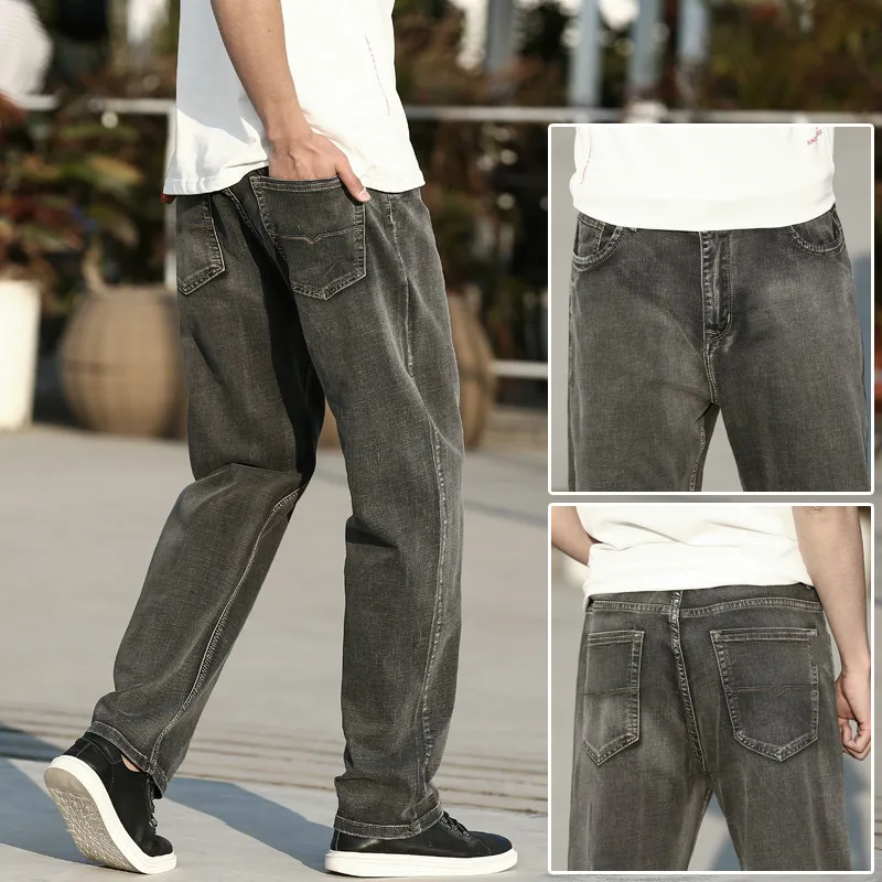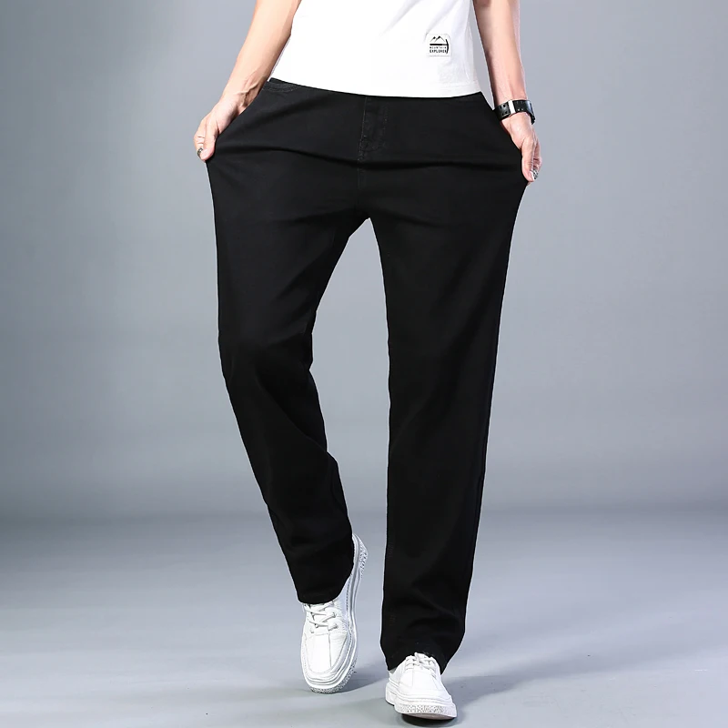 Джинсы мужские прямые свободного покроя, тонкие брюки стрейч, в кла...