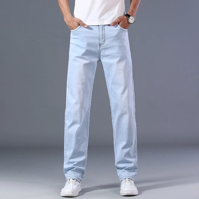 Джинсы-стрейч мужские, из хлопка, свободные, голубые, на лето, 2021