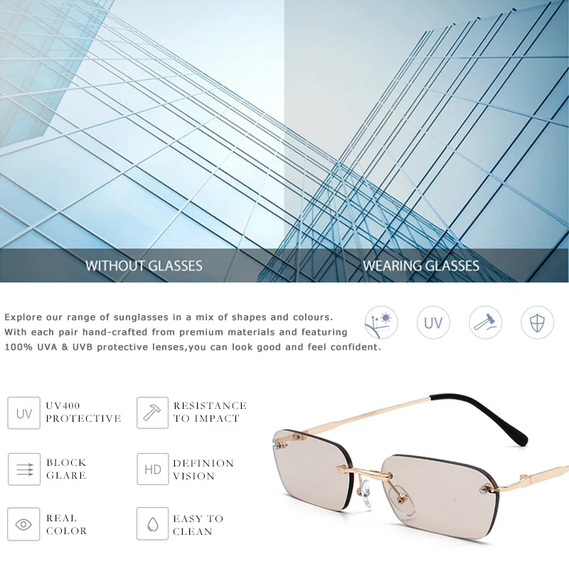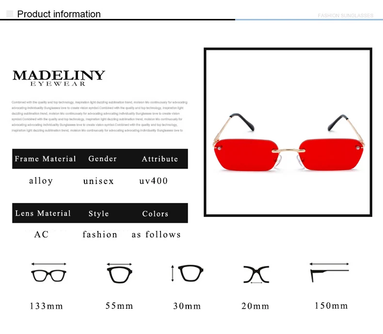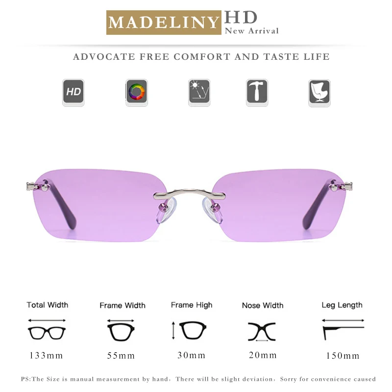 Женские и мужские солнечные очки без оправы MADELINY, прямоугольные солнцезащитные очки в стиле ретро, маленькая оправа, летние квадратные очки, MA452