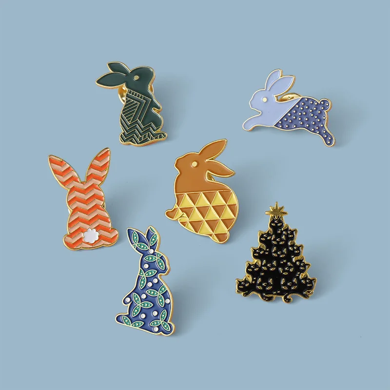 Симпатичная Женская Брошь в полоску в виде рубашки с изображением героев мультфильмов, брошь в виде симпатичного кролика, эмалированные булавки, новая брошь из серии животных, значок в форме сосны