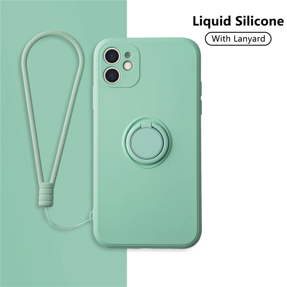 Чехол с магнитным кольцом-держателем для Xiaomi Redmi Note 10 9 8 8T 9S 10S 9 Pro Max 9 9A 9C, жидкий силиконовый чехол-подставка с ремешком
