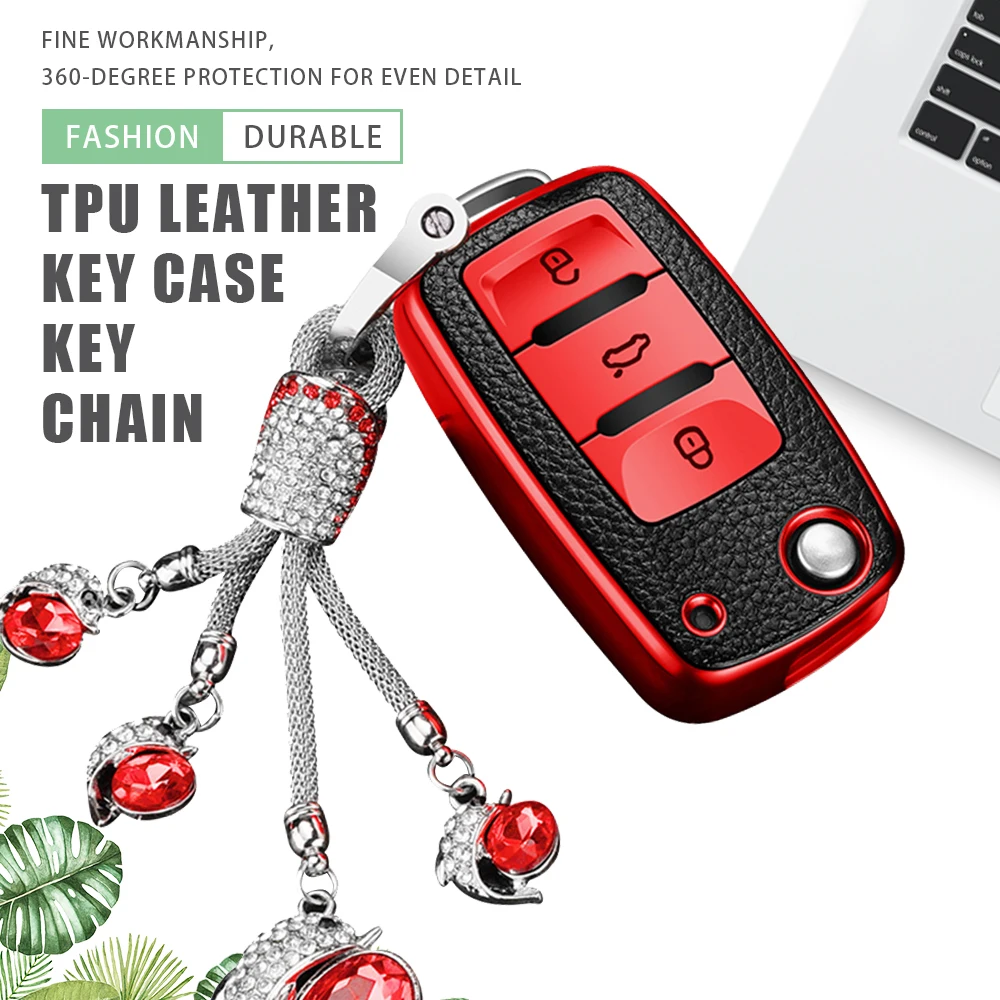 Чехол из ТПУ кожи для автомобильного ключа, чехол-держатель для ключей для Volkswagen, VW Jetta, Golf, Passat, Beetle, Skoda, Seat, Polo, B5, защита