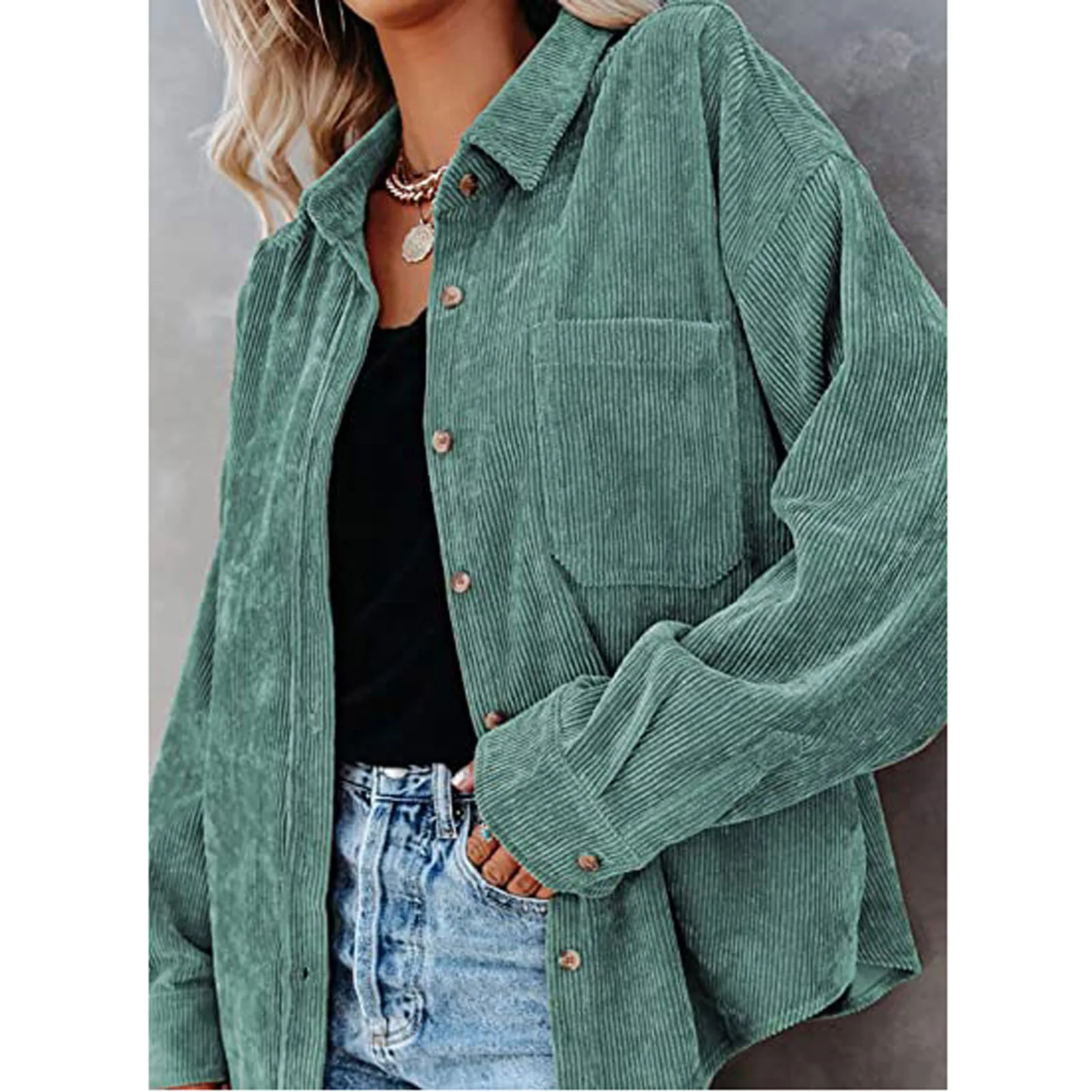 Женская Вельветовая рубашка с длинным рукавом, V-образным вырезом и пуговицами