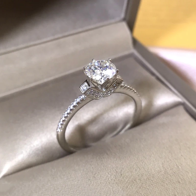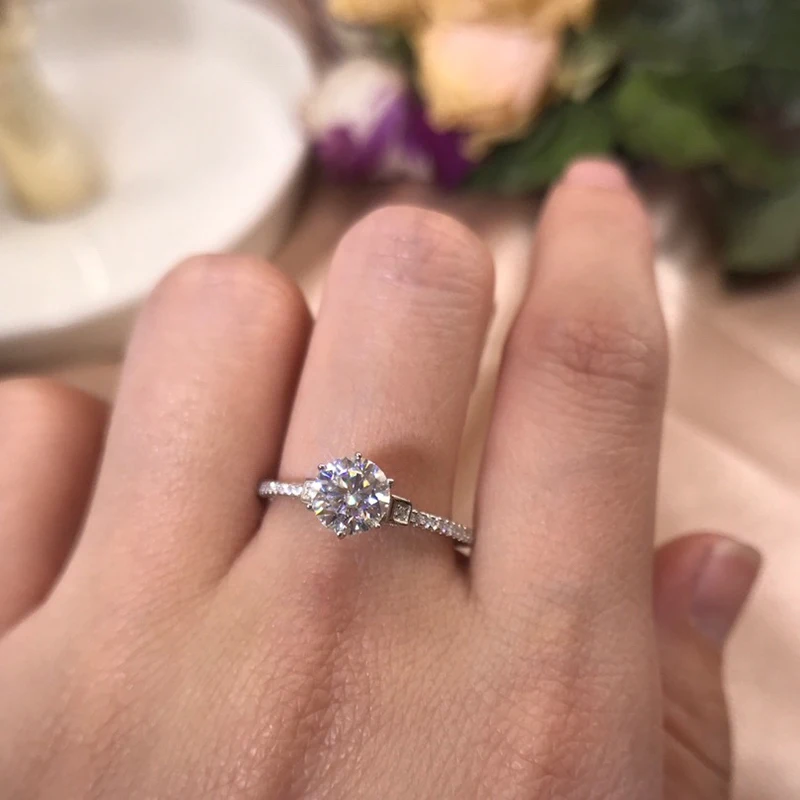 1CT 6,5 мм настоящий Муассанит кольцо Гра сертификат S925 стерлингового серебра Свадебная вечеринка для женщин, ювелирное изделие, подарок
