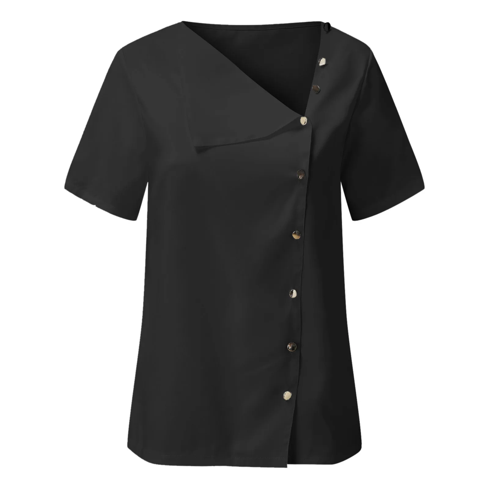 Однотонные женские блузки на пуговицах, Повседневная Блузка с коротким рукавом и V-образным вырезом для девушек, повседневные свободные уличные Модные Винтажные летние женские топы
