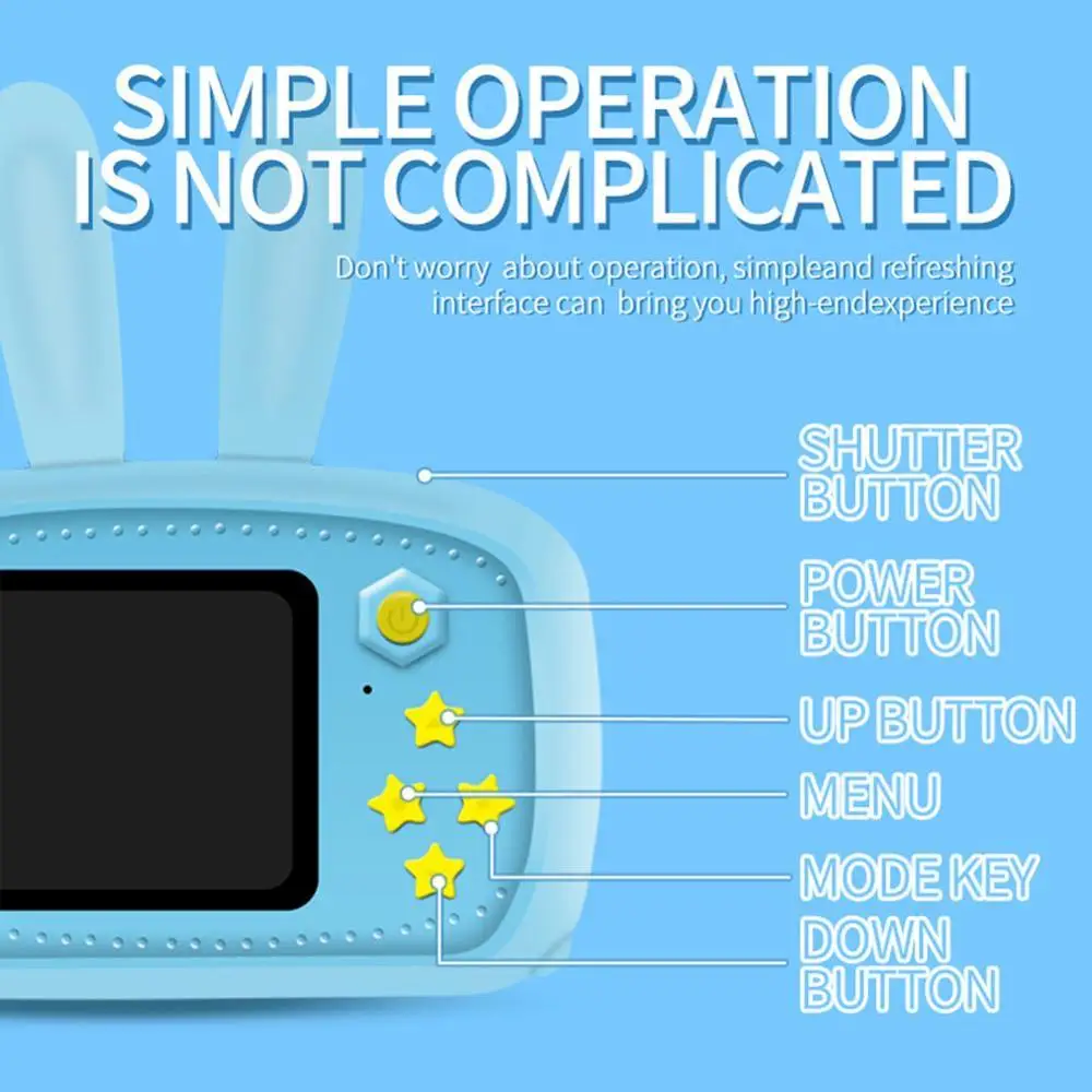 1. Ультра мини-размер, подходит для маленьких детей, очаровательные мультфильмы и яркий цветной дизайн, это вдумчивый подарок для детей, это волшебная камера, которая открывает интеллект, чтобы развивать наблюдение за детьми и открывать для себя красоту.