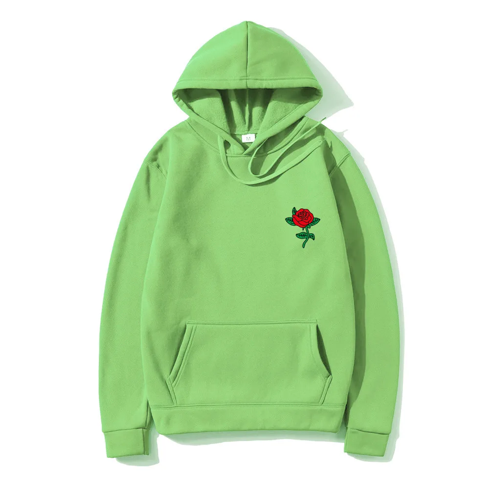 Harajuku толстовка с капюшоном Женская мода уличная Роза Цветочный Принт толстовки Топы Пуловер Ms толстовка с капюшоном одежда