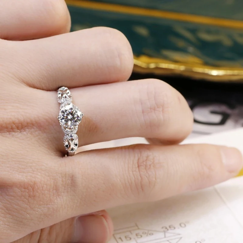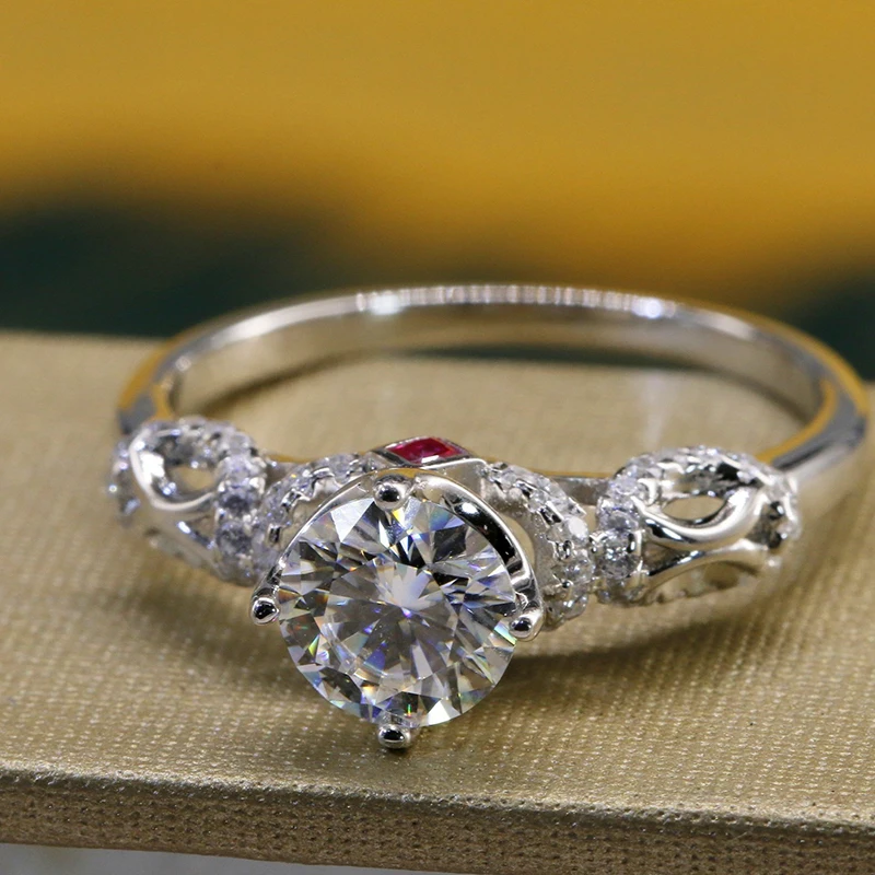 Женское классическое кольцо из серебра 18 К с муассанитом 1-5 карат