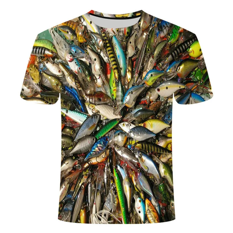 Мужская повседневная и удобная дышащая футболка с коротким рукавом, 3D футболка с цифровым принтом рыбы, Новое поступление 2021