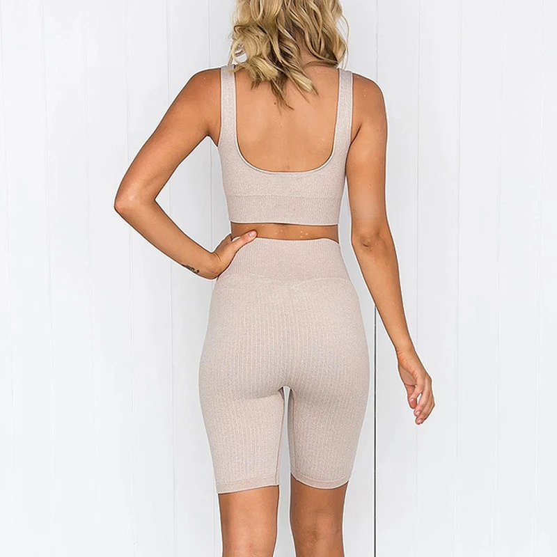 Женская спортивная одежда, комплект для йоги, одежда для тренировок, спортивные штаны, леггинсы для тренажерного зала, бесшовный бюстгальтер для фитнеса, короткий топ, костюм без рукавов, женская одежда