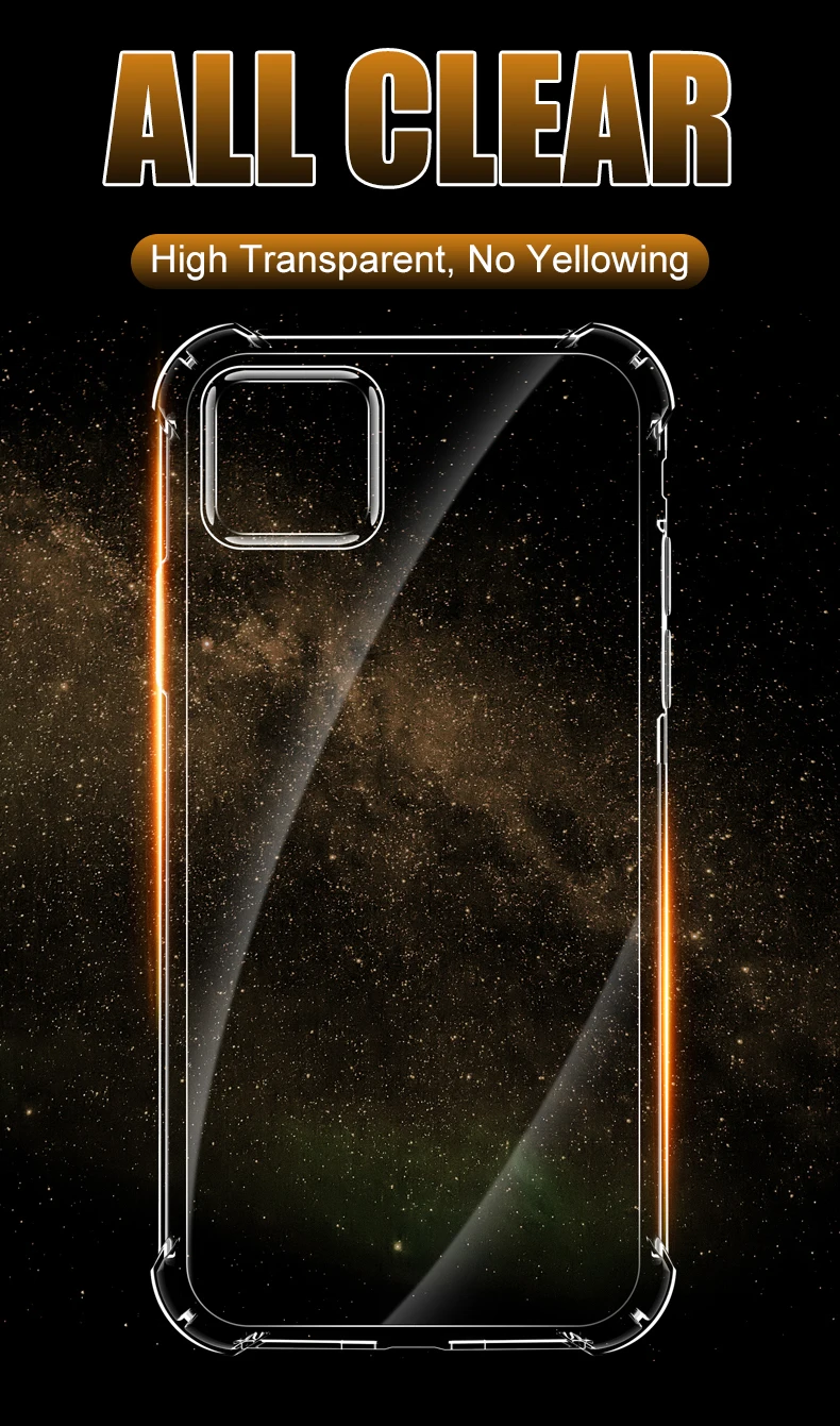 С алмазным антиоксидантным слоем и 5-го поколения передовых технологий анти-желтого цвета, этот чехол профессионально изготовлен из прозрачного ТПУ с гигантской подушкой, плотное прилегание, создающее иллюзию Парящего блеска в руке. Экстравагантный, но легкий, элегантный, но Электрический Прозрачный чехол для iPhone обеспечивает в 10 раз более длительную четкость, чем другие, и полностью подчеркивает естественную красоту вашего чехла для телефона iPhone. Дополненный кристально чистыми углами, элегантный дизайн делает его идеальным для украшения вашего стиля, добавляя сияющее прикосновение гламура вашему телефону